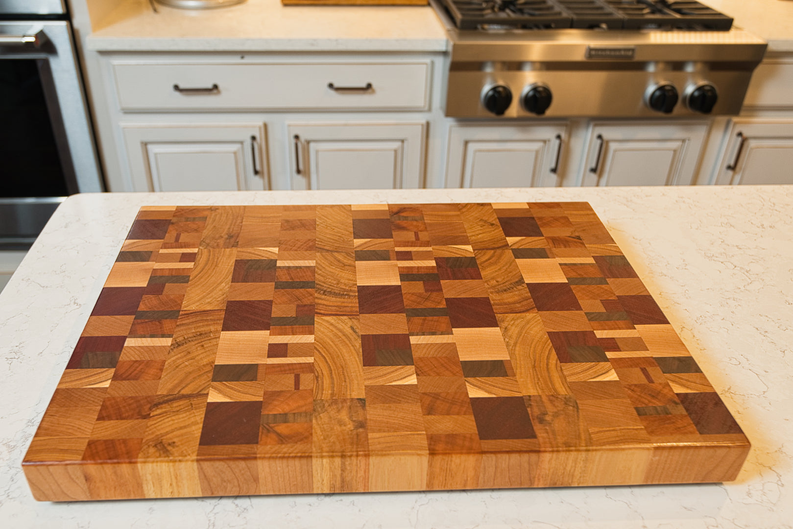 This beautiful oversize cutting board for brisket, or other cuts of meat measures 21"x16"x1.5", and is crafted from a blend of premium international and domestic hardwoods, is an essential tool for Pitmasters. 1" Juice Groove and non skid 1" black silicone non slip rubber feet. Its ample size provides ample space for slicing and serving, while the combination of hardwoods ensures durability and resistance to wear, making it ideal for handling the rigors of barbecue preparation. Our boards are meant to be generational and passed down as the years go by.