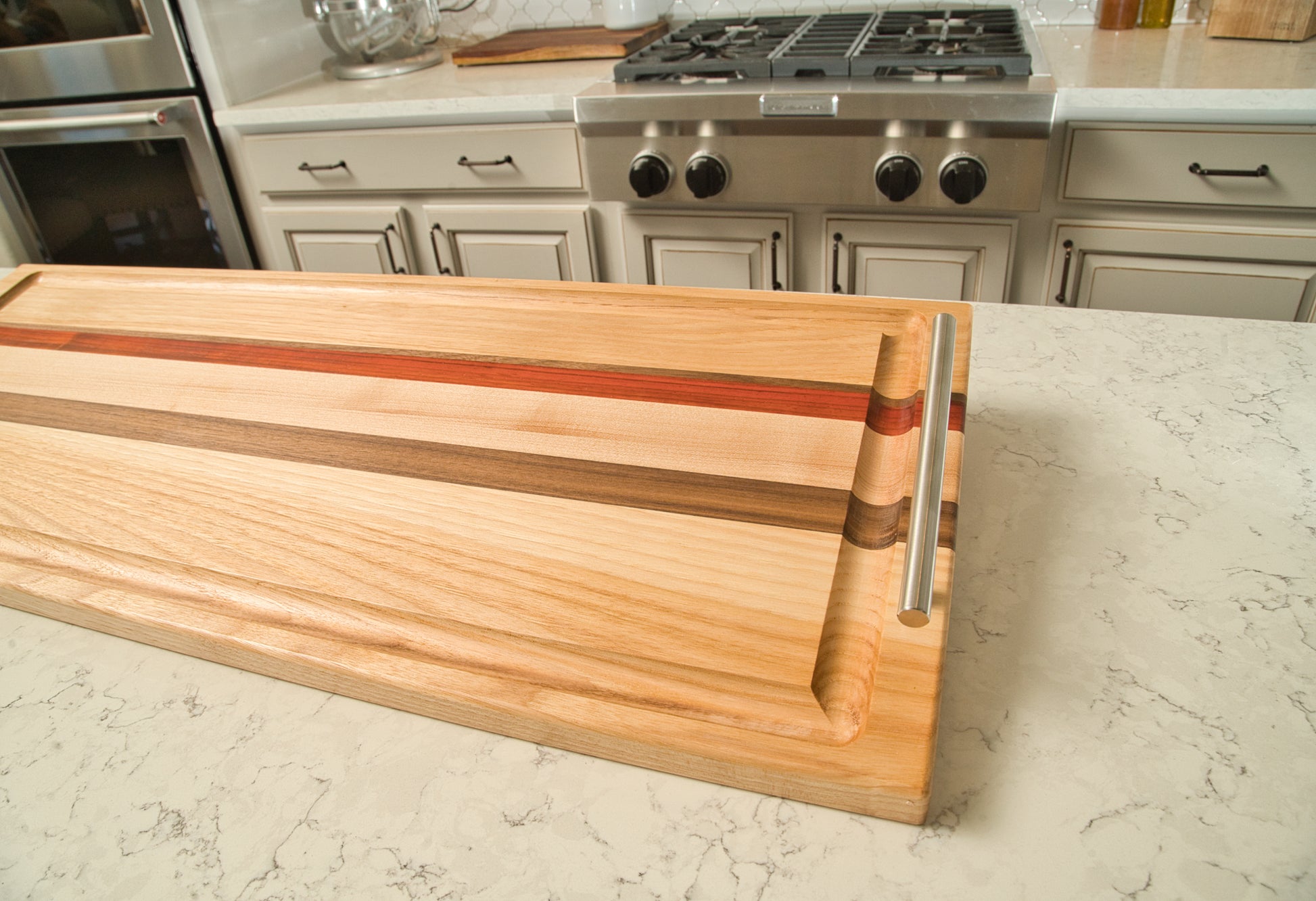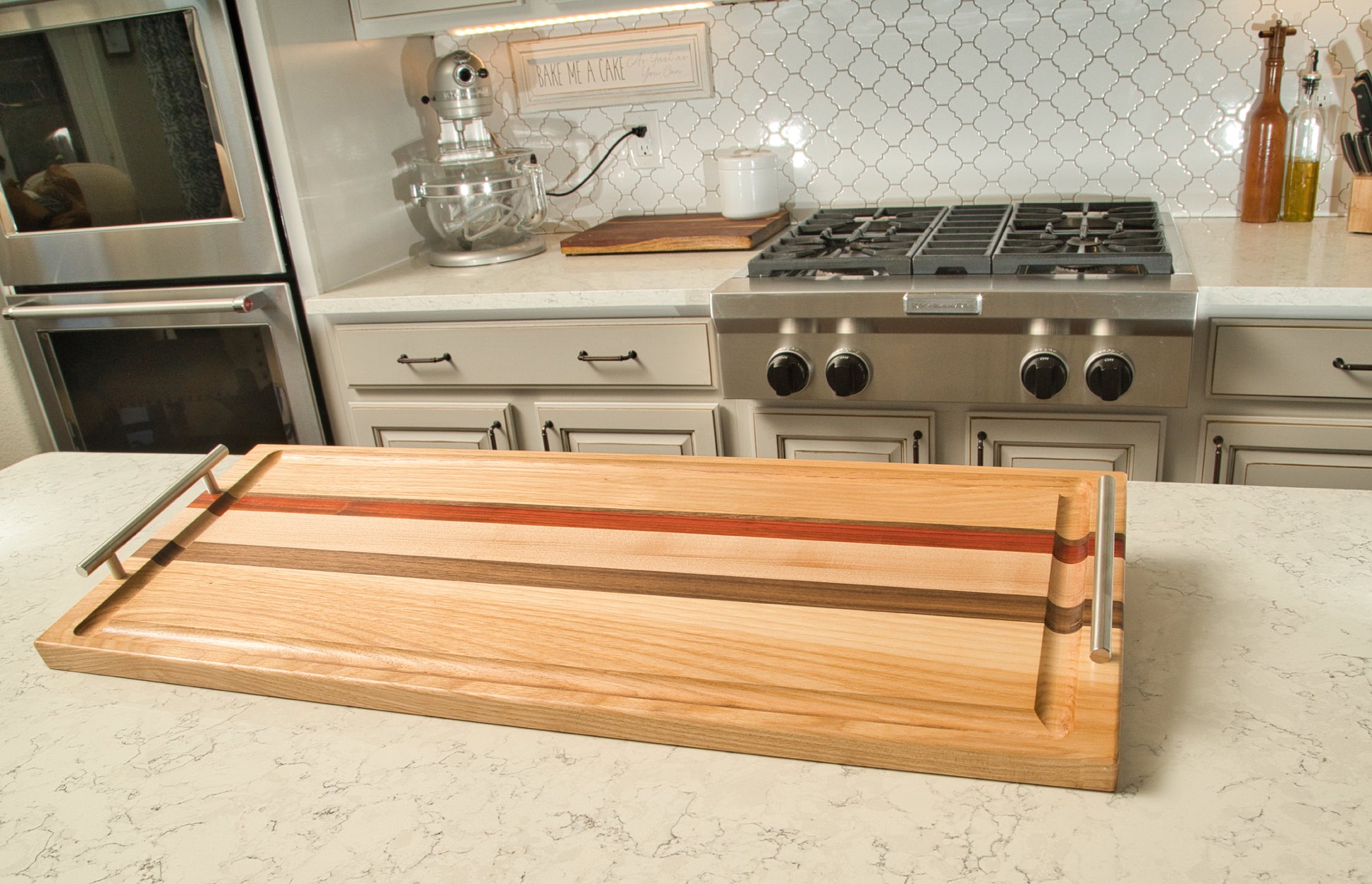 Introducing the ultimate cutting board designed specifically to fit perfectly on the front shelf of your pellet smoker. This design was derived from the front shelf on a Yoder 640 pellet smoker but we quickly identified that it will work with most pellet smokers that have a front shelf on them. Crafted with premium hardwoods, this board exudes both elegance and durability. The thoughtfully designed handles on each side ensure easy portability and handling. With a generous size of 31" x 12" x 1", it provides ample space for all your cutting and prepping needs. The 1-inch juice groove helps keep your workspace clean and tidy, capturing any excess liquids from meats and fruits. Elevate your grilling experience with this functional and stylish cutting board, making outdoor cooking a breeze.