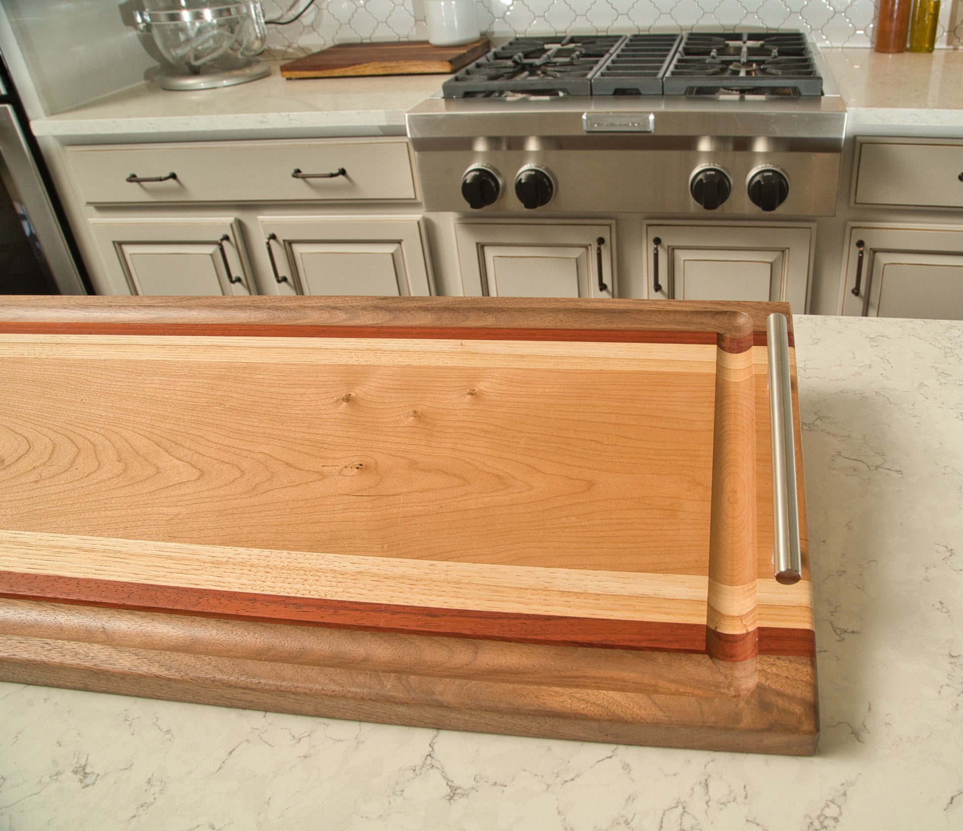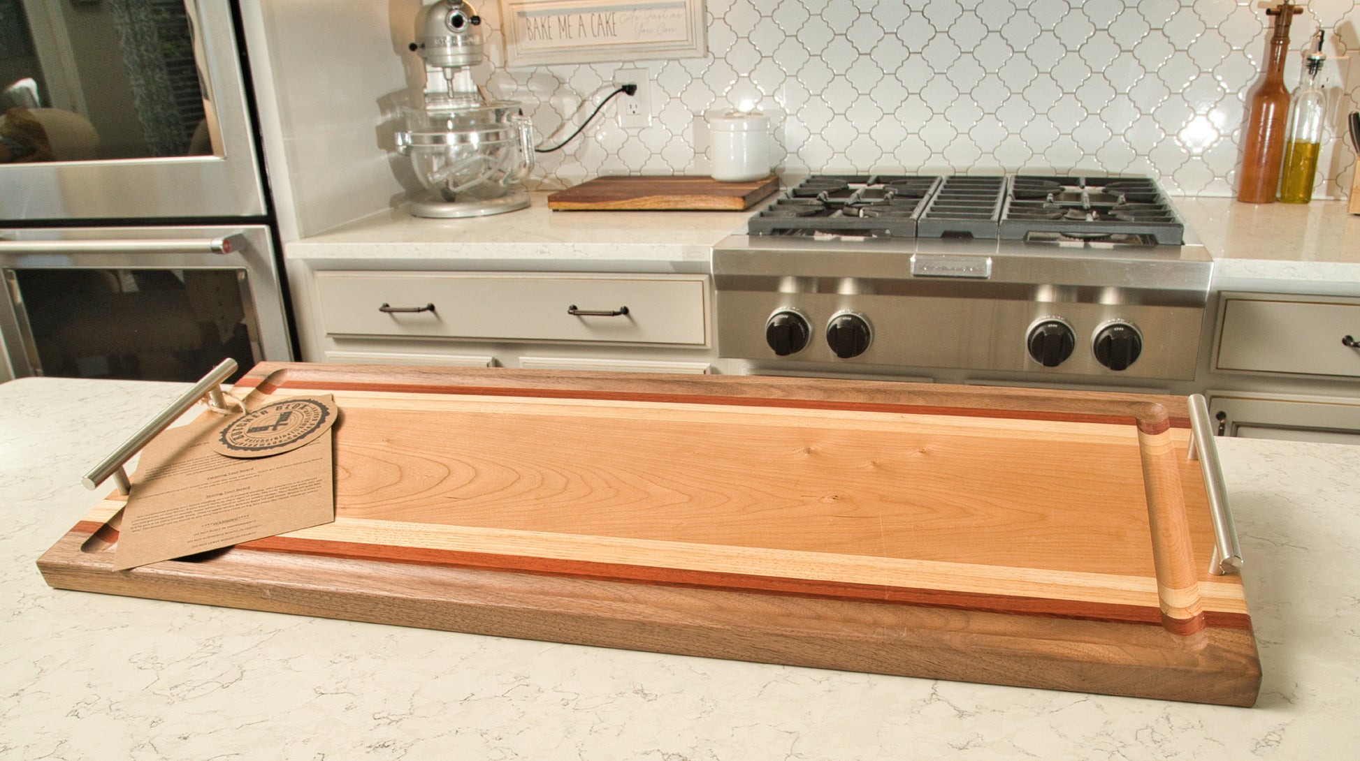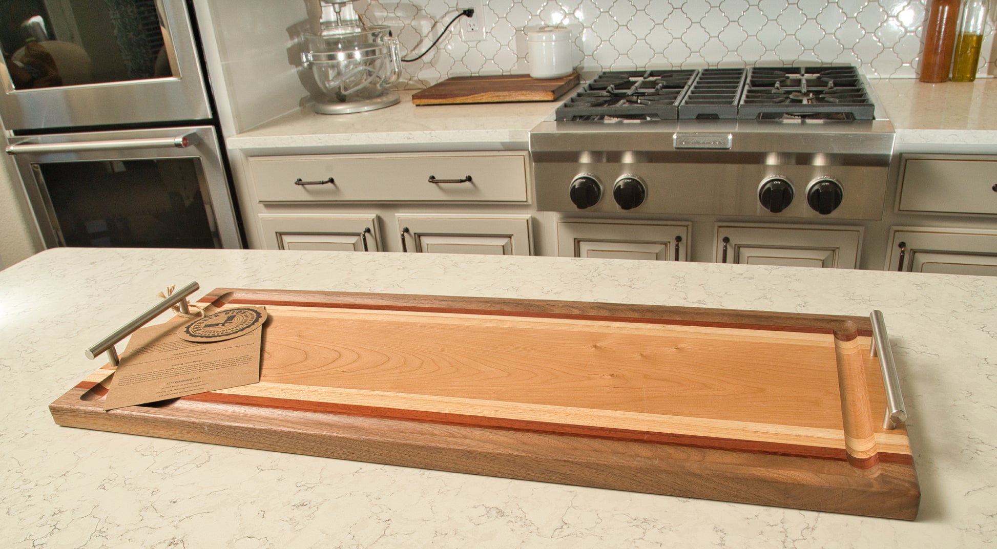 Introducing the ultimate cutting board designed specifically to fit perfectly on the front shelf of your pellet smoker. This design was derived from the front shelf on a Yoder 640 pellet smoker but we quickly identified that it will work with most pellet smokers that have a front shelf on them. (Please check to see if your smoker has a front shelf and will accomodate this sized board.) Crafted with premium hardwoods, this board exudes both elegance and durability. The thoughtfully designed handles on each side ensure easy portability and handling. With a generous size of 31" x 12" x 1", it provides ample space for all your cutting and prepping needs. The 1-inch juice groove helps keep your workspace clean and tidy, capturing any excess liquids from meats and fruits. Elevate your grilling experience with this functional and stylish cutting board, making outdoor cooking a breeze.